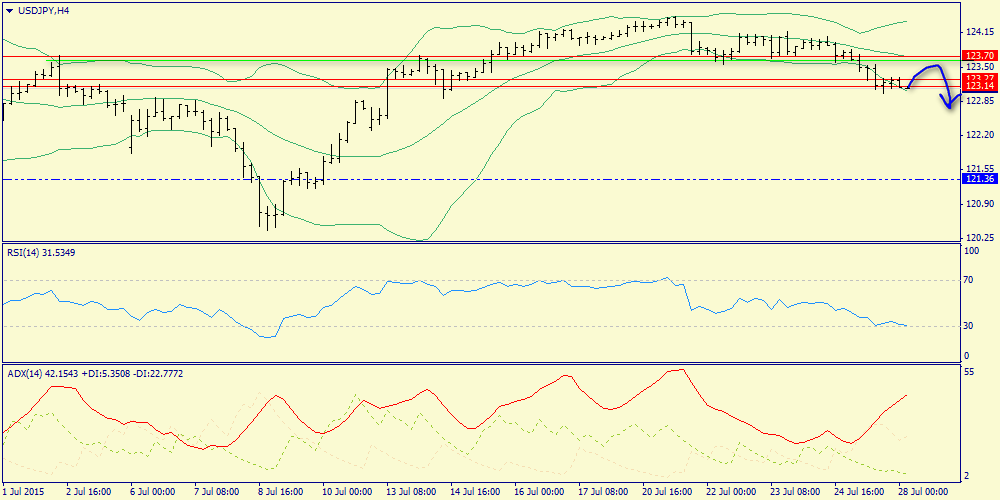 28 июля 2015, USD/JPY. Продаем в случае отката к 123.70.