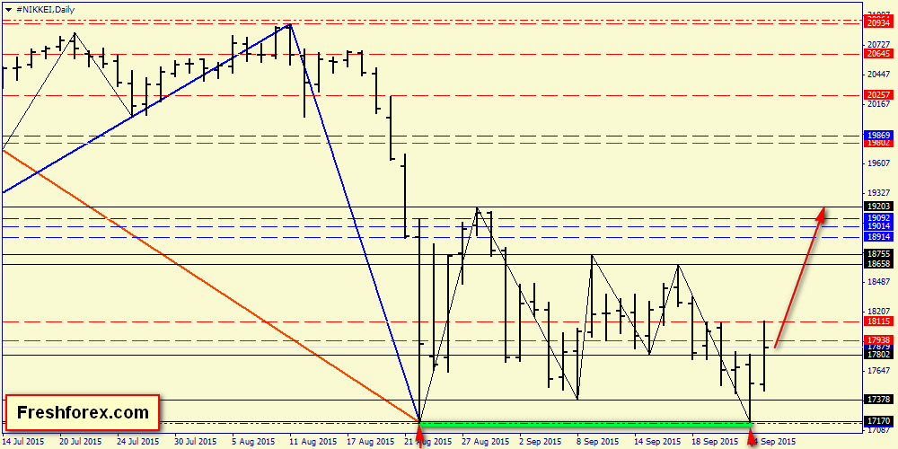 Дневной график: отмечаем признаки двойного дна, хотя рост не выглядит как трендовый. Тем не менее, достижима зона 9918.4.