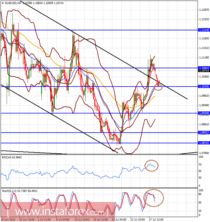 Пара EURUSD консолидируется после роста в понедельник на фоне повышения фондовых индексов в Европе. Если сегодня данные из США окажутся лучше прогнозов - это должно поддержать доллар против евро и пара может продолжить снижение к 1.1015 на фоне локальной перекупленности.