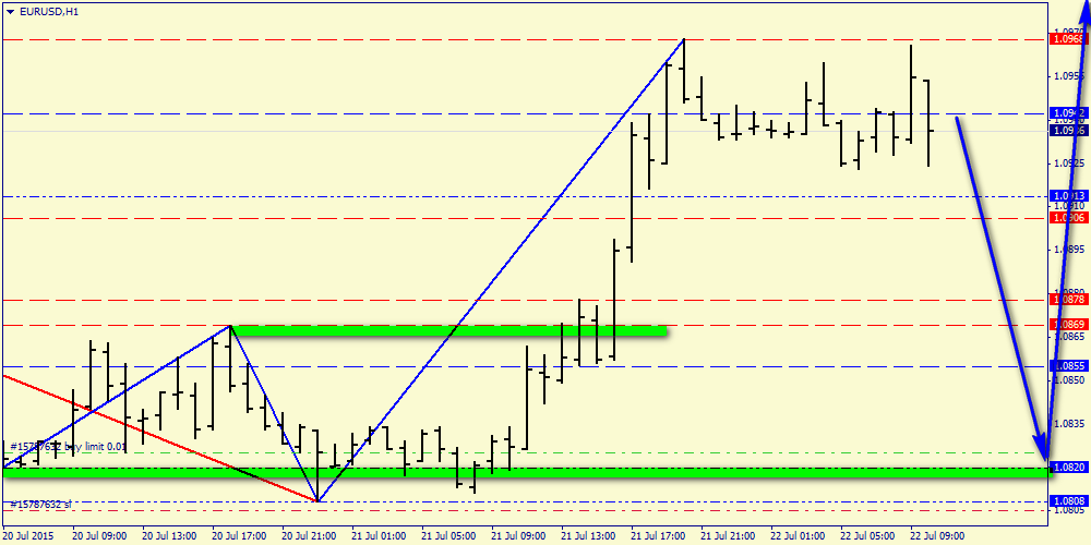22 июля 2015, EUR/USD. Структуре евро необходим нисходящий свинг.