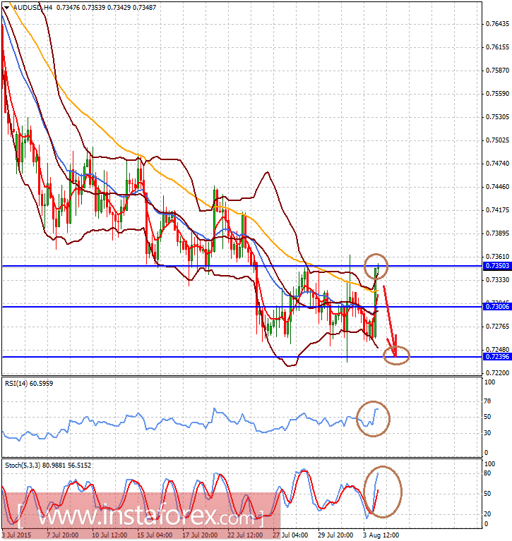 Австралийский доллар получил хорошую поддержку на фоне решения РБА оставить процентные ставки без изменений. Ранее пара распродавалась на ожиданиях того, что ЦБ может понизить ключевую процентную ставку, но этого не произошло, так как управляющий банком Г. Стивенс заявил, что имеется явная корреляция между снижением национальной валюты и сырьевыми товарами. Они могут приостановить дальнейшее падение, что, вероятно, может локально и поддержать австралийскую валюту. Несмотря на рост пары AUDUSD, есть вероятность, что на фоне сильных данных из США, если пара не закрепится выше отметки 0.7350, она упадет к 0.7240.