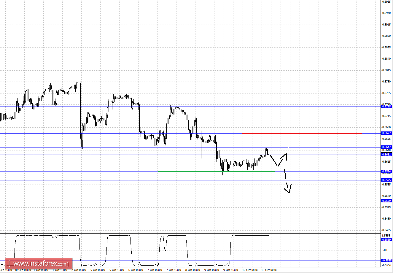 Краткосрочное восходящее движение возможно в коридоре 0.9631 - 0.9647, пробой последнего значения будет располагать к развитию углубленного коррекционного движения, здесь цель - 0.9677.