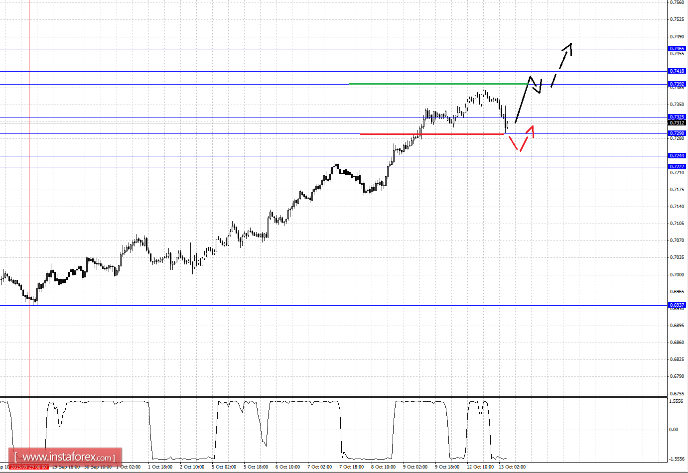 Консолидированное движение возможно в коридоре 0.7325 - 0.7290, пробой последнего значения приведет к углубленной коррекции, здесь цель - 0.7244. Диапазон 0.7244 - 0.7222 шумовой.