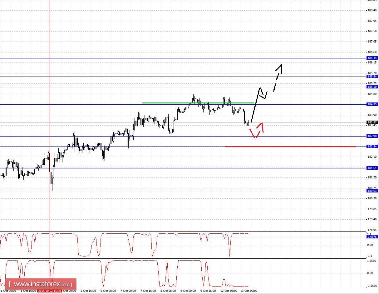 Краткосрочное нисходящее движение возможно в коридоре 182.98 - 182.54, этот диапазон является ключевой поддержкой для верха, его проход ценой будет располагать к развитию нисходящего движения, в данном случае цель - 181.61.