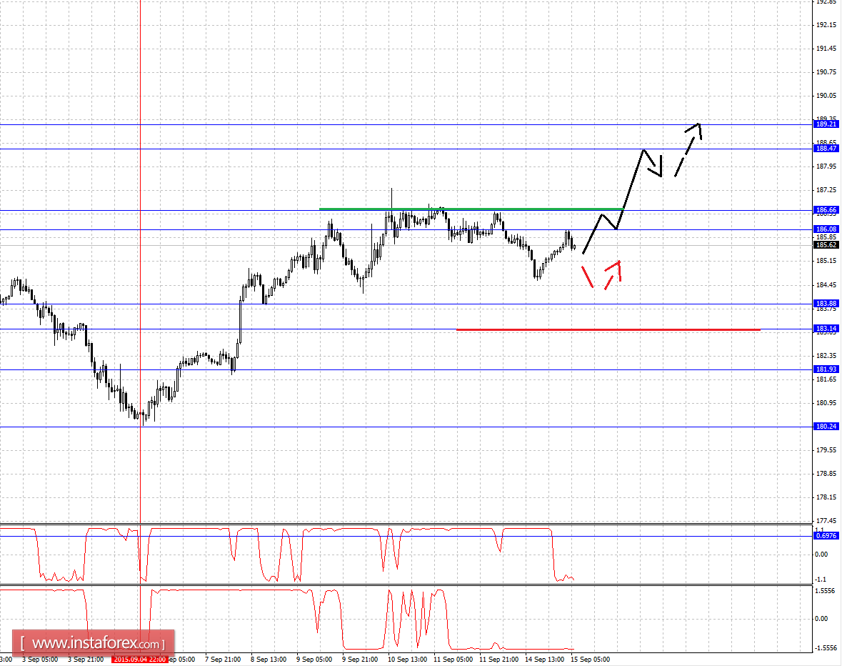 Краткосрочное нисходящее движение возможно в коридоре 183.88 - 183.14, пробой последнего значения приведет к углубленной коррекции, здесь цель - 181.93, этот уровень является ключевой поддержкой для нисходящей структуры.