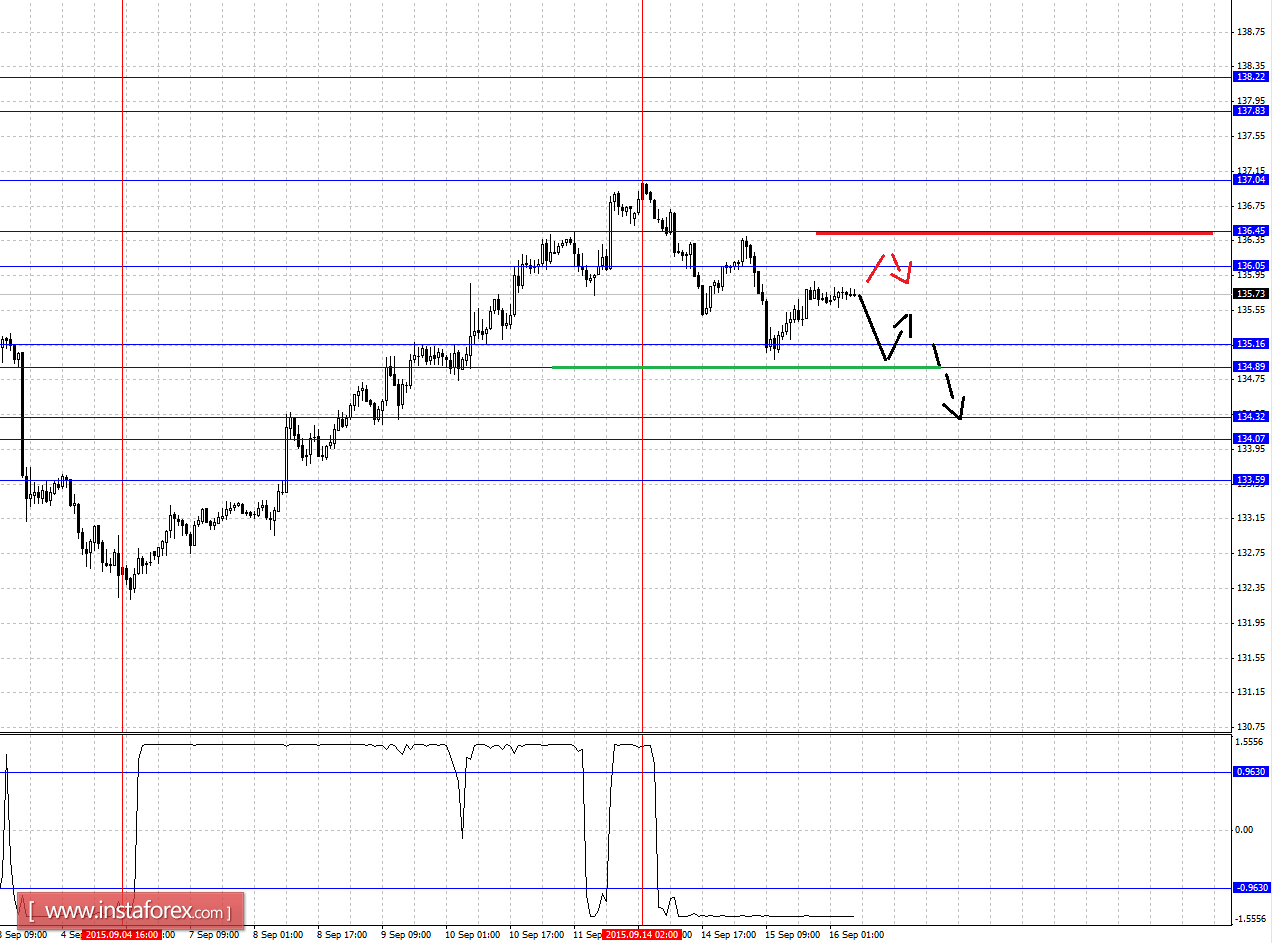 Краткосрочное восходящее движение возможно в коридоре 136.05 - 136.45, пробой последнего значения будет располагать к развитию восходящей структуры, здесь потенциальная цель - 137.04, этот уровень является ключевым сопротивлением для развития восходящего движения.