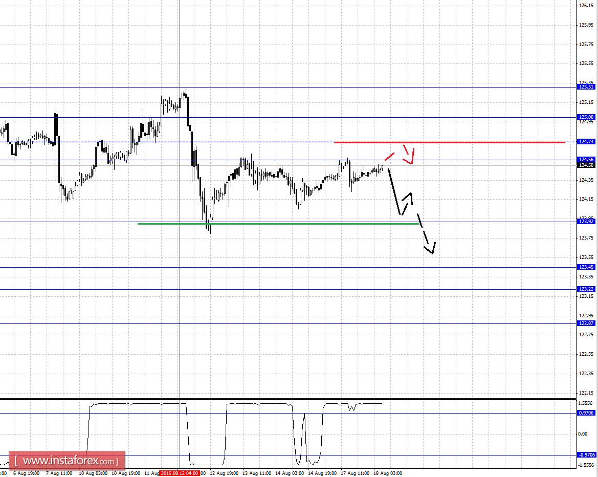 Краткосрочное восходящее движение возможно в коридоре 124.56 - 124.74, пробой последнего значения приведет к углубленной коррекции, здесь цель - 125.00, этот уровень является ключевой поддержкой для нисходящей структуры от 12 августа.