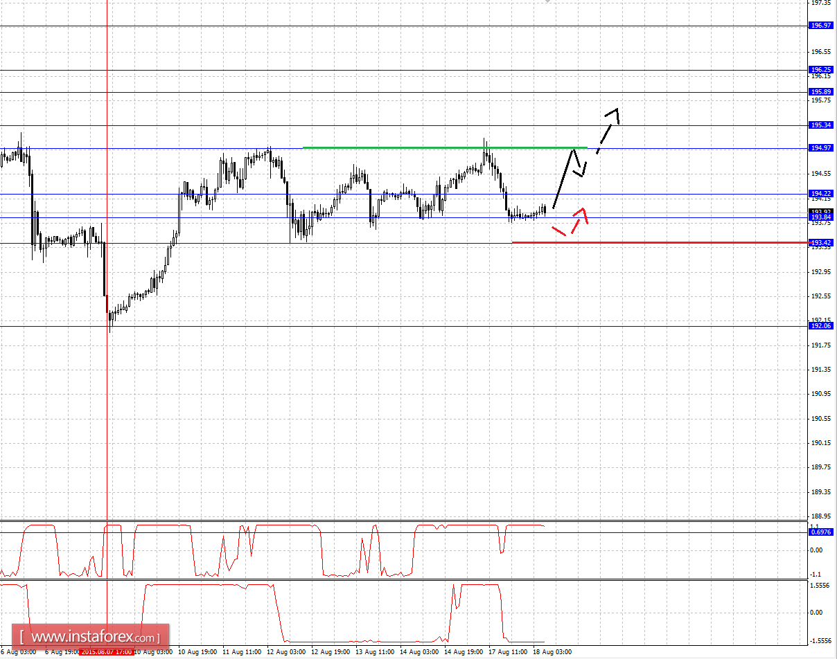 Консолидированное движение возможно в коридоре 194.22 - 193.84, пробой последнего значения приведет к углубленной коррекции, здесь цель - 193.42.