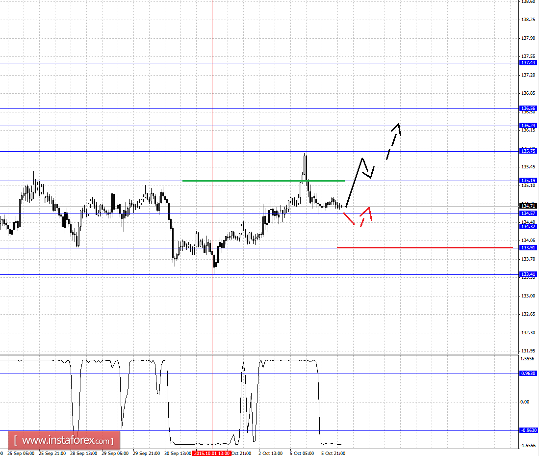 По паре Евро/Иена ключевыми уровнями в масштабе Н1 являются: 137.43, 136.56, 136.24, 135.75, 135.19, 134.57, 134.32, 133.91 и 133.41. Здесь мы следим за формированием локальной структуры для верха от 1 октября. Продолжения движения кверху ожидаем после пробоя 135.19, в данном случае первая цель - 135.75, пробой которой позволит рассчитывать на движение к уровню 136.24, в коридоре 136.24 - 136.56 консолидация цены. Потенциальным значением для верха считаем уровень 137.43, движение к которому ожидаем после пробоя 136.56.