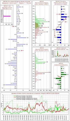 - Комментарий к диаграмме объемов (данные обновляются 1 раз в неделю согласно официальным публикациям сведений о рынке, последние данные от 30.08.11): В целом ситуация неопределенная. Объемы спекулятивных позиций низкие.