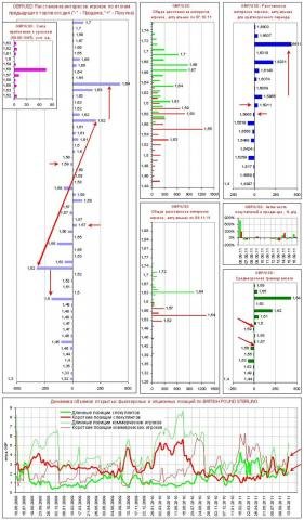 - Комментарий к диаграмме объемов (данные обновляются 1 раз в неделю согласно официальным публикациям сведений о рынке, последние данные от 13.09.11): Наблюдается рост коротких позиций спекулянтов. Сформирован сигнал ослабления GBP.