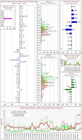 - Комментарий к диаграмме объемов (данные обновляются 1 раз в неделю согласно официальным публикациям сведений о рынке, последние данные от 25.10.11): Объем коротких позиций спекулянтов подвергся коррекциии, однако объем длинных позиций хеджеров остается очень большим. Риски коррекции ведут к рискам усиления волатильности.