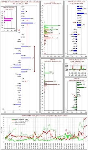 - Комментарий к диаграмме объемов (данные обновляются 1 раз в неделю согласно официальным публикациям сведений о рынке, последние данные от 06.12.11): Внимание следует обратить на огромные объемы длинных позиций коммерческих игроков по GBP. Данные объемы значительно выше исторического максимума, который регистрировался в октябре 2011 г. и соответствовал по времени