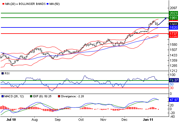 Сейчас курс близок к своему максимальному уровню года, достигнутому 18/01/11 в 1922.15.