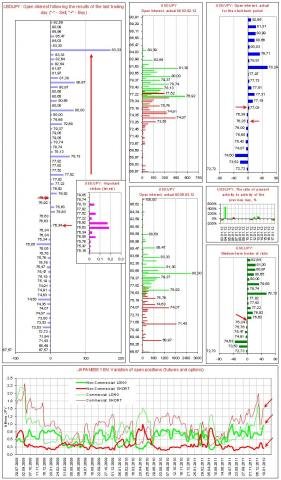- Комментарий к диаграмме объемов (данные обновляются 1 раз в неделю согласно официальным публикациям сведений о рынке, последние данные от 10.01.11): Объем длинных позиций спекулянтов по JPY растет, объем коротких снижается.
