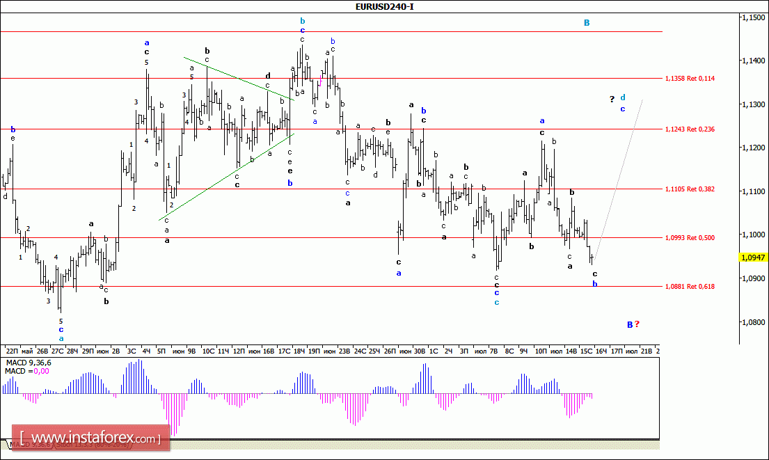 Вчерашнее заявление Дж.Йеллен о высокой вероятности повышение ставки ФРС еще до конца года не позволило паре EUR/USD возобновить восходящее движение и к закрытию заокеанской сессии цена опустилась к отметке 1,0930. Сложившаяся при этом волновая ситуация по-прежнему позволяет предполагать, что валютная пара, оставалась в стадии формирования волны b, в d, в В, в В, которая значительно усложнила свою волновую структуру и к окончанию торгов выглядела вполне завершенной. Если это так, то можно ожидать возобновления роста котировок от достигнутого вчера минимума.