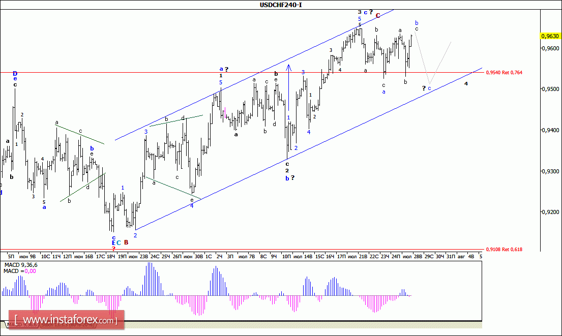 Волновой анализ валютной пары USD/CHF за 28 июля 2015 года