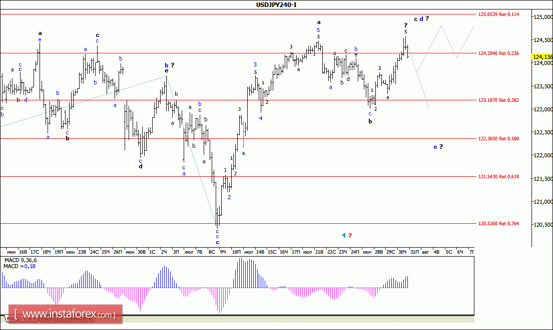 Волновой анализ валютной пары USD/JPY за 31 июля 2015 года