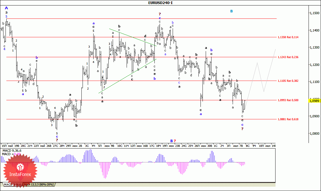 Волновой анализ валютной пары EUR/USD за 8 июля 2015 года