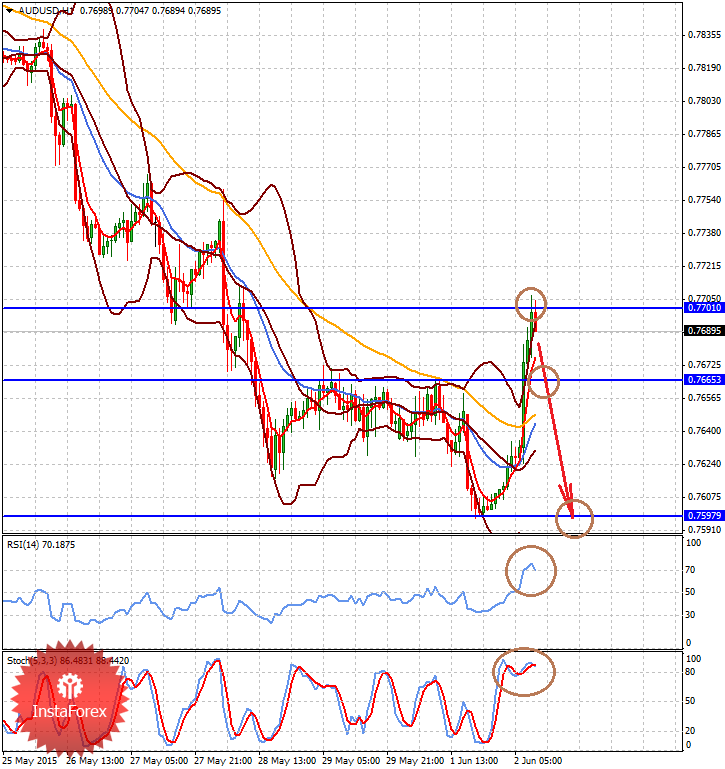 Пара AUDUSD достигла уровня 0.7700, но не смогла выше него закрепиться и скорее всего скорректируется вниз. Преодоление отметки 0.7665 приведет к ее локальному падению к 0.7600.
