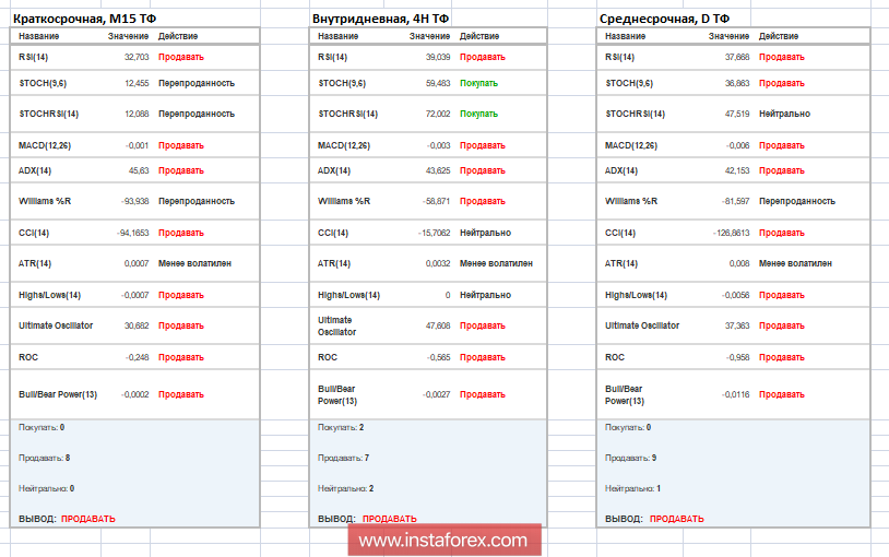Анализируя разный сектор таймфреймов (ТФ), мы видим, что в краткосрочной, внутридневной и среднесрочной перспективах имеется нисходящий интерес, отражающий общий фон рынка с точки зрения техники.
