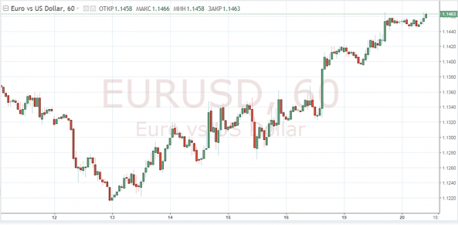 Если доллар уйдет ниже 95.50, то это вполне может стать сигналом на слом восходящей тенденции. По главной валютной паре подобная «отмашка» будет получена при росте выше 1.1500.