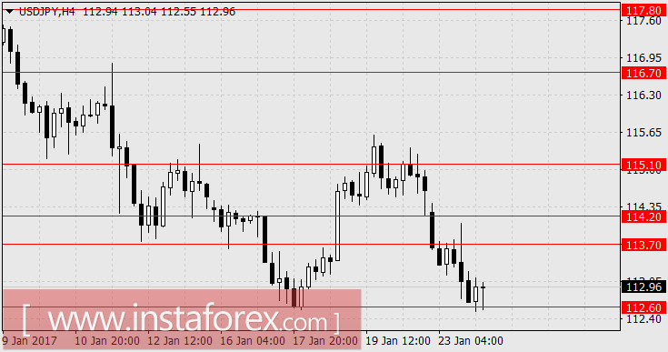 В понедельник йена снизилась (укрепилась) на 192 пункта как реакция инвесторов на инаугурацию Дональда Трампа, сегодня цена остановилась на технической поддержке 112.60 в раздумии. Макроэкономический фон Японии сохраняется позитивным: вчера деловая активность во всех секторах промышленности и сферы услуг (All Industries Activity) за декабрь подросла на 0,3% (прогноз составлял 0,4%), сегодня Manufacturing PMI за текущий месяц подрос с 52,4 до 52,8 при ожидании снижения до 52,3. Удерживают цену на данном минимуме подавленные фондовые индексы. Американский Dow Jones вчера снизился на 0,14%, сегодня японский Nikkei225 теряет 0,20%. Но оптимистичные настроения проявляются в том, что на других азиатских площадках уже рост: австралийский S&P/ASX200 +0,70%, что особенно показательно с заморозкой переговоров по ТТП; China A50 0,11%, что не менее показательно на требовании Д.Трампа перевести производство в США; индонезийский JKSE +0,56%; индийский Nifty50 +0,41%. Страхи по вербальным атакам уходят, дело за действиями.