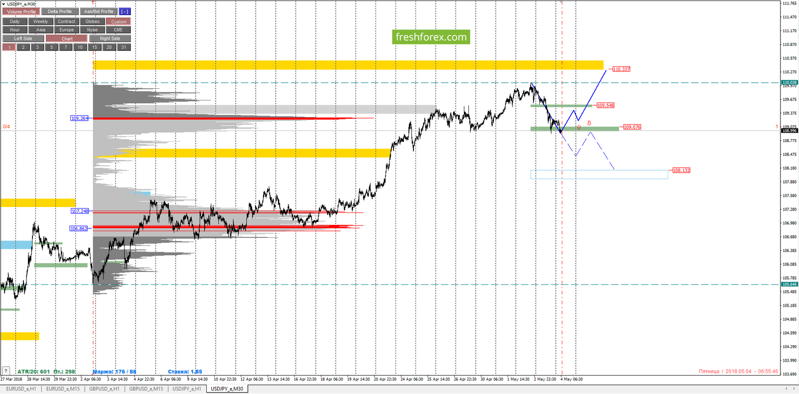 04 мая 2018, USD/JPY. USDJPY: покупки после импульсного пробития уровня 109.264.