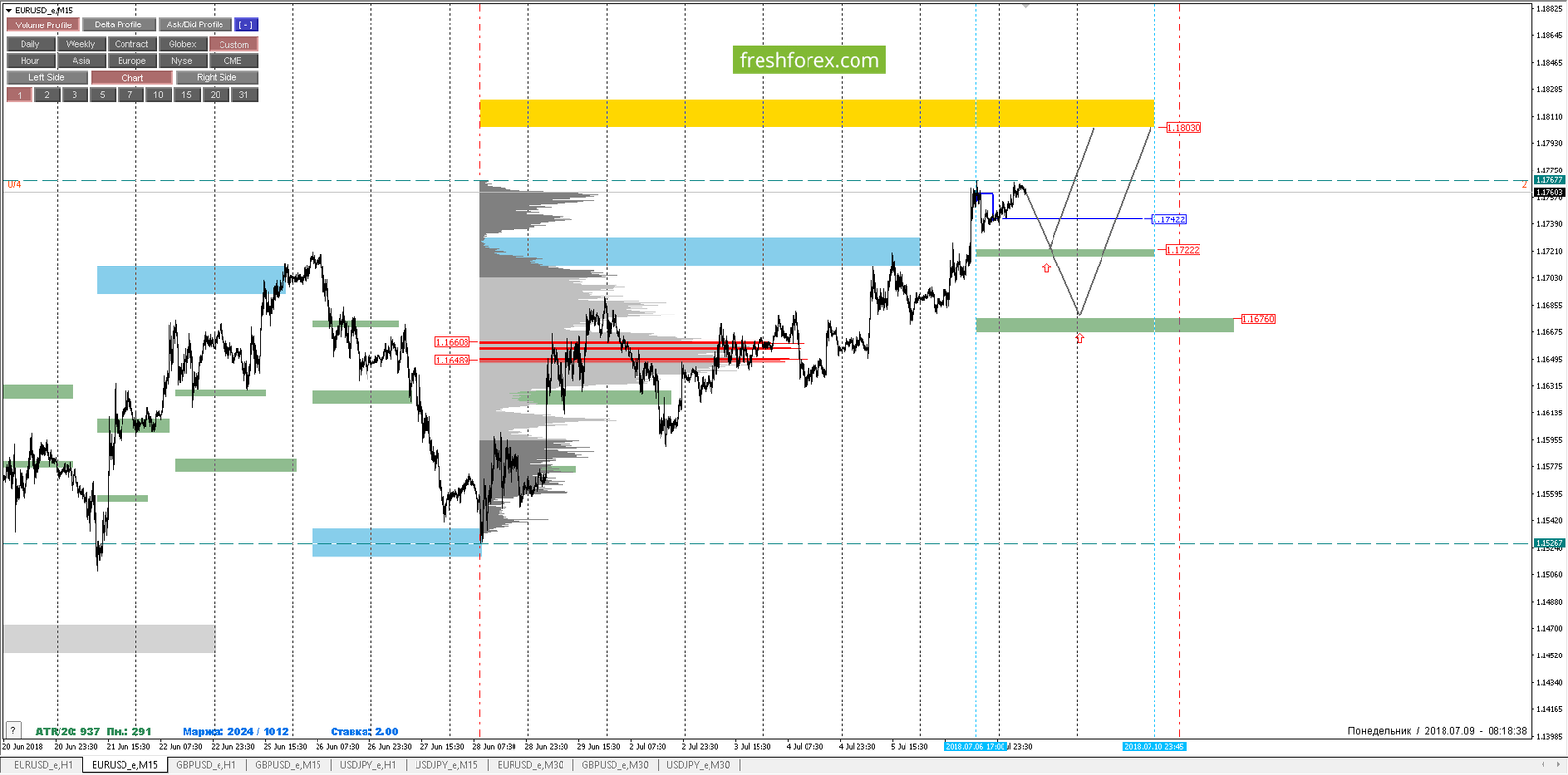09 июля 2018, EUR/USD. EURUSD: осторожные покупки по среднесрочной тенденции.