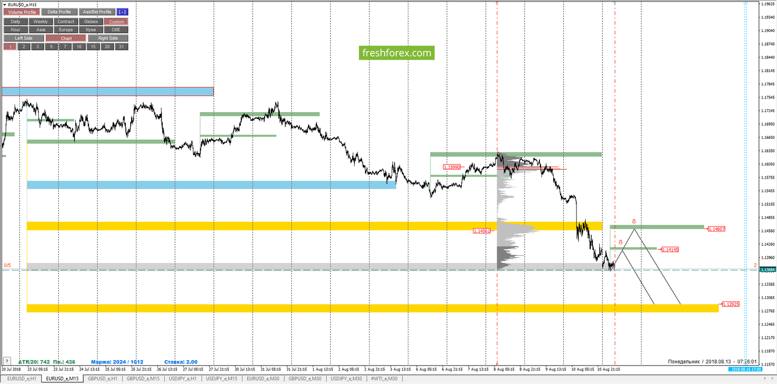13 августа 2018, EUR/USD. EURUSD: продолжаем продавать пару.