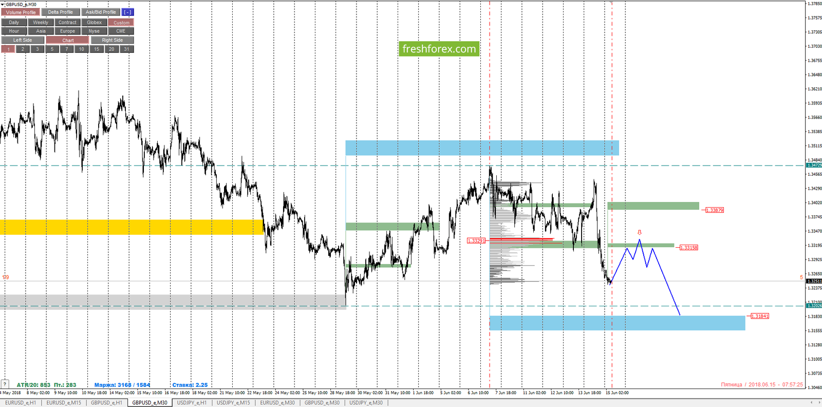 Внутридневные цели: обновление минимумов от 15.06.2018 - 1.32437, среднесрочные цели: тест верхней границы НКЗ - 1.31841.