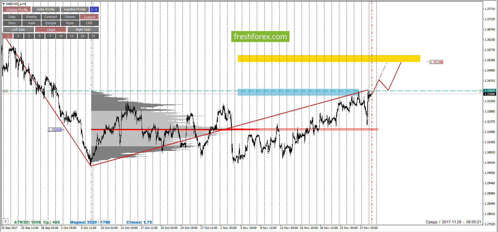 29 ноября 2017, GBP/USD. GBPUSD: покупатели доминируют.