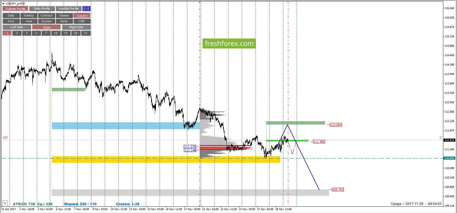 29 ноября 2017, USD/JPY. USDJPY: осторожные продажи.