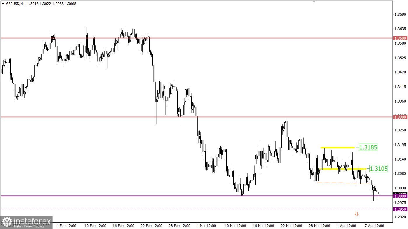 Валютная пара GBPUSD в ходе нисходящего движения достигла психологического уровня 1.3000, который ранее на истории играл роль опоры. Этот шаг указывает на высокий интерес трейдеров к коротким позициям, что в перспективе ускорит нисходящий ход.
