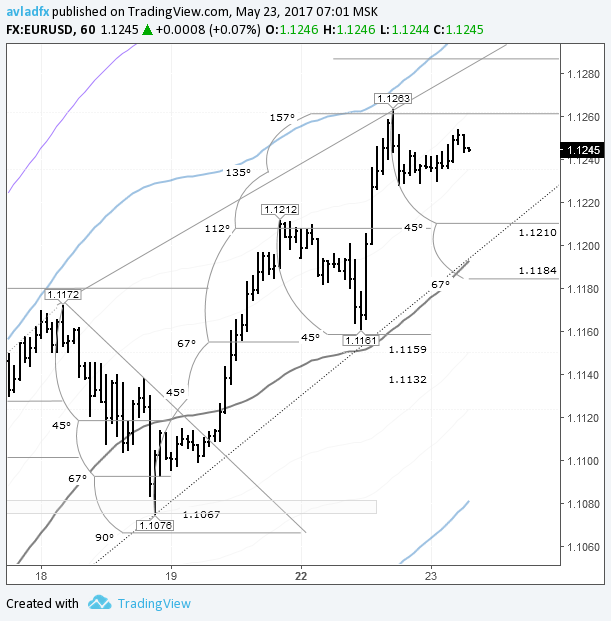 На сегодня я не делаю прогноз, так как рынок воспринимает только факторы на укрепление евро. У меня нет внутридневных идей. Ближайший уровень сопротивления по паре евро/доллар находится на уровне 1,1330. Пока еврокроссы не достигнут важных уровней сопротивления, евро/доллар будет ползти вверх против толпы, сбивая их стопы. Тренд с поддержкой кроссов опасен для коротких позиций. Чтобы начать рассматривать сигналы на продажу, необходимо закрепиться ниже трендовой линии. На текущем часовом баре она проходит через 1,1193. Если на индексе евро на часовом периоде сработает «двойная вершина», то есть вероятность увидеть очередную нисходящую коррекцию до 1,1207.