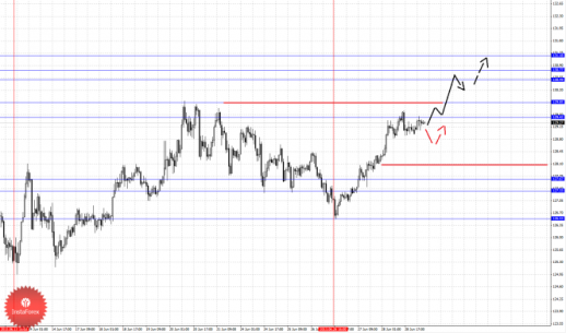 По паре Евро/Иена ключевыми уровнями являются: 131.18, 130.77, 130.49, 129.85, 129.42, 127.67, 127.33 и 126.53. Здесь мы следим за развитием локальной восходящей структуры от 26 июня. Краткосрочное восходящее движение ожидаем в коридоре 129.42–129.85, пробой последнего значения должен сопровождаться выраженным восходящим движением, в данном случае цель 130.49, в коридоре 130.49–130.77 консолидация цены. Потенциальным значением для верха считаем уровень 131.18, по достижении которого ожидаем откат книзу. Диапазон 127.67–127.33 является ключевой поддержкой для восходящей структуры от 26 июня, его проход ценой будет располагать к развитию нисходящего движения, в данном случае первая потенциальная цель – 126.53.