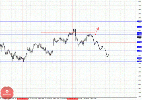 Уважаемые трейдеры, в своем аналитическом обзоре я рассматриваю развитие структуры на предстоящий день по таким валютным парам как EUR/USD, GBP/USD, USD/CHF, USD/JPY, AUD/USD, USD/CAD, EUR/JPY, GBP/JPY и EUR/USD. После прочтения данного материала Вы должны наиболее четко и понятно представлять возможные перспективы развития валют. В данном методе анализа, для наиболее простого изложения своего подхода к рынку, я использую стандартные термины технического анализа, такие как уровни поддержки и сопротивления, однако сам метод основан на свойствах фрактальной функции и несет в себе глубокий смысл понимания развития текущей и будущей ситуации. Все свои расчеты я выполняю от начальных условий развития цикла. Черной стрелкой указано направление движение цены от текущих начальных условий. Красной стрелкой показано альтернативное движение, в случае пробоя ключевых уровней для отмены развития восходящего/нисходящего цикла. Пунктирными стрелками я указываю продолжение движения. Как правило, красной стрелкой я указываю корректировочное движение и краткосрочный выход за уровень. Убедительная просьба: не используйте только одни изображения, изучите текст, чтобы понять последовательность развития того или иного события. Также прошу учесть, что для более ясного понимания изложенного здесь материала, необходимо ознакомиться с фрактальным анализом, так Вы сможете понимать то, что здесь написано, и как это можно использовать в своей торговой системе.