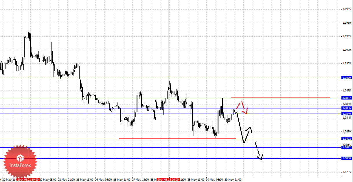 По паре Доллар/Канадский доллар ключевыми уровнями в масштабе Н1 являются: 1.0889, 1.0867, 1.0856, 1.0849, 1.0822, 1.0812 и 1.0800. Здесь краткосрочное нисходящее движение ожидаем в коридоре 1.0822 – 1.0812, пробой последнего значения приведет к движению до потенциальной цели - 1.0800, по достижению этого уровня локальную структуру от 28 мая будет рассматривать в качестве опорных начальных условий. Краткосрочное восходящее движение возможно в коридоре 1.0849 – 1.0856, пробой последнего значения приведет к углубленному движению, здесь цель – 1.0867, этот уровень является ключевым сопротивлением для развития верха, его проход ценой позволит рассчитывать на движение к потенциальной цели – 1.0889.