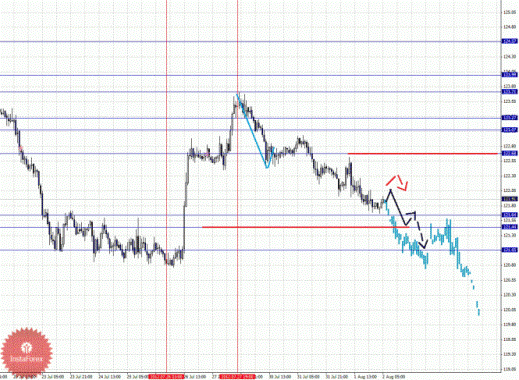 По паре Фунт/Иена ключевыми уровнями являются: 124.57, 123.99. 123.71, 123.27, 123.07, 122.68, 121.64, 121.44 и 121.05. Здесь мы следим за нисходящей структурой от 27 июля. Краткосрочное движение книзу ожидаем в диапазоне 121.64 – 121.44, пробой последнего значения должен сопровождаться выраженным движением к потенциальной цели – 121.05, по достижении этого уровня ожидаем консолидацию. Уровень 122.68 является ключевой поддержкой для нисходящей структуры, его пробой будет располагать к развитию восходящей тенденции, однако до этого мы ожидаем оформление локальной структуры.