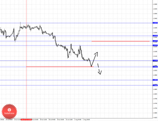 По паре Фунт/Доллар ключевыми уровнями являются: 1.5427, 1.5318, 1.5274, 1.5237, 1.5108, 1.5056, 1.4944 и 1.4898. Здесь мы продолжаем следить за нисходящей структурой от 26 июля. Продолжения движения книзу ожидаем после пробоя 1.5108, в данном случае цель 1.5056, в этом диапазоне консолидация цены. Пробой уровня 1.5055 должен сопровождаться выраженным нисходящим движением, в данном случае цель 1.4944. Потенциальным значением для низа считаем уровень 1.4898, по достижении которого ожидаем консолидацию. Краткосрочное восходящее движение возможно в коридоре 1.5237–1.5274, пробой последнего значения приведет к углубленному движению, здесь цель 1.5318, от этого уровня ожидаем ключевой разворот книзу, его пробой будет располагать к развитию восходящей тенденции, в данном случае потенциальная цель – 1.5427.