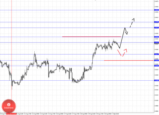 По паре Доллар/Франк ключевым уровня являются: 0.9443, 0.9398, 0.9377, 0.9342, 0.9322, 0.9277, 0.9254, 0.9235 и 0.9180. Здесь мы следим за развитием восходящей структуры от 20 августа. Краткосрочное восходящее движение ожидаем в диапазоне 0.9322–0.9342, пробой последнего значения должен сопровождаться выраженным восходящим движением, в данном случае цель 0.9377, в коридоре 0.9377–0.9398 консолидация цены. Потенциальным значением для верха считаем уровень 0.9443, по достижении которого ожидаем откат книзу. Краткосрочное нисходящее движение возможно после пробоя 0.9277, здесь цель – 0.9254, пробой которого, в свою очередь, приведет к развитию углубленной коррекции, в данном случае цель 0.9235. От уровня 0.9235 мы ожидаем ключевой разворот кверху, его пробой будет располагать к развитию нисходящей структуры, в данном случае потенциальная цель – 0.9180.