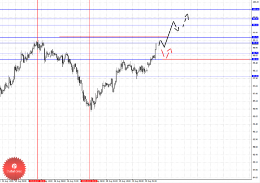 По паре Доллар/Иена ключевыми уровнями являются: 100.16, 99.85, 99.65, 99.25, 99.06, 98.73, 98.53 и 97.98. Здесь мы продолжаем следить за восходящей структурой от 28 августа. Краткосрочное восходящее движение возможно в коридоре 99.06–99.25, пробой последнего значения должен сопровождаться выраженным восходящим движением, в данном случае цель – 99.65, в коридоре 99.65–99.85 консолидация цены. Потенциальным значением для верха считаем уровень 100.16, по достижении которого ожидаем откат книзу. Краткосрочное нисходящее движение возможно в диапазоне 98.73–98.53, пробой последнего значения будет располагать к развитию нисходящей структуры, здесь потенциальная цель - 98.00.