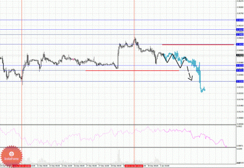 По паре Доллар/Франк ключевым уровня являются: 0.9549, 0.9504, 0.9480, 0.9434, 0.9335, 0.9312 и 0.9260. Здесь, несмотря на развитие нисходящей коррекции от 29 декабря, мы пока не наблюдаем выраженной начальной структуры. Краткосрочное нисходящее движение ожидаем в коридоре 0.9335 – 0.9312, пробой последнего значения должен сопровождаться выраженным нисходящим движением, в данном случае потенциальная цель 0.9260, возле этого уровня консолидация. Уровень 0.9434 является ключевым сопротивлением для верха, его пробой будет располагать к развитию восходящей структуры, в данном случае первая цель 0.9480. В коридоре 0.9480 – 0.9504 консолидация цены. Потенциальным значением для верха считаем уровень 0.9549, определен от восходящей структуры 21 декабря.