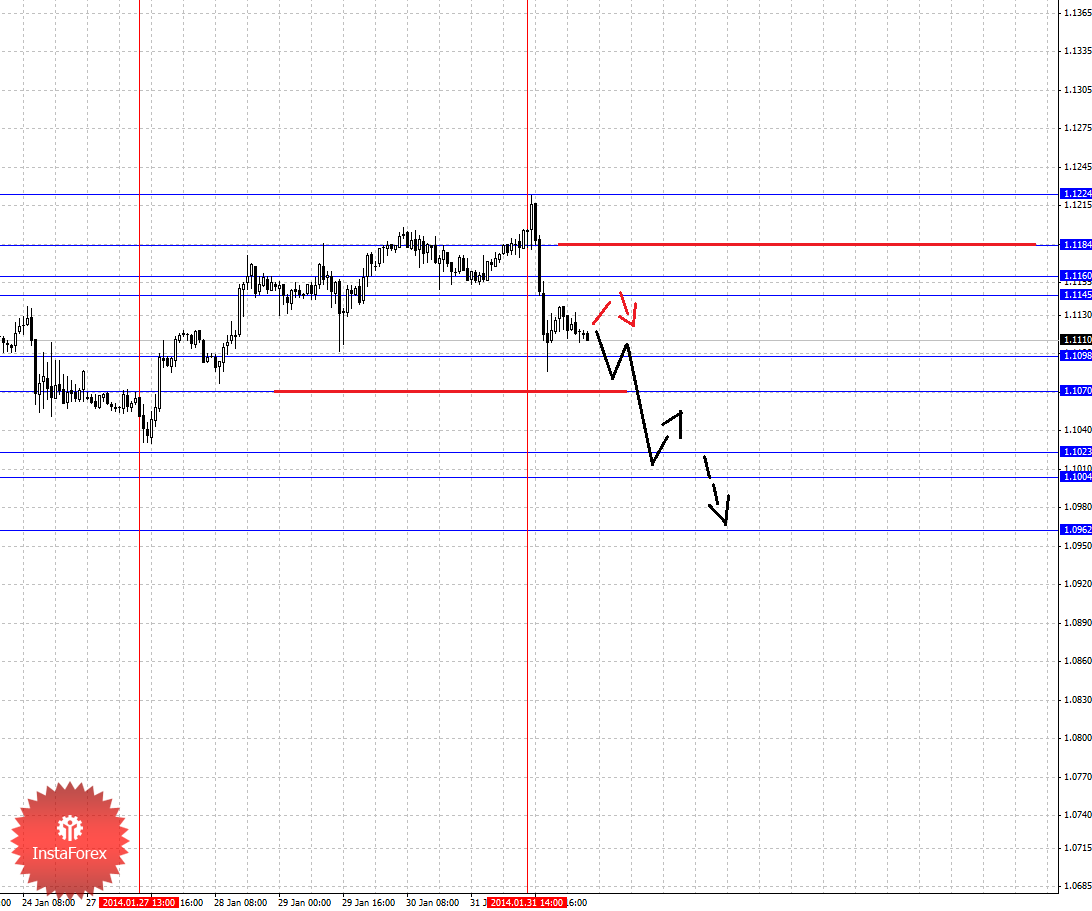Уважаемые трейдеры, в своем аналитическом обзоре я рассматриваю развитие структуры по определенной валютной паре на предстоящую торговую сессию. После прочтения данного материала, Вы должны наиболее четко и понятно представлять возможные перспективы развития валют. В данном методе анализа, для наиболее простого изложения своего подхода к рынку, я использую стандартные термины технического анализа, такие как уровни поддержки и сопротивления, однако сам метод основан на свойствах фрактальной функции и несет в себе глубокий смысл понимания развития текущей и будущей ситуации. Все свои расчеты я выполняю от начальных условий развития цикла. Черной стрелкой указано направление движение цены от текущих начальных условий. Красной стрелкой показано альтернативное движение, в случае пробоя ключевых уровней для отмены развития восходящего/нисходящего цикла. Пунктирными стрелками я указываю продолжение развития движения. Как правило, красной стрелкой я указываю корректировочное движение и краткосрочный выход за уровень. Убедительная просьба: не используйте только одни изображения, изучите текст, чтобы понять последовательность развития того или иного события. Также прошу учесть, что для более ясного понимания изложенного здесь материала, необходимо ознакомиться с фрактальным анализом, так Вы сможете понимать то, что здесь написано, и как это можно использовать в своей торговой системе.