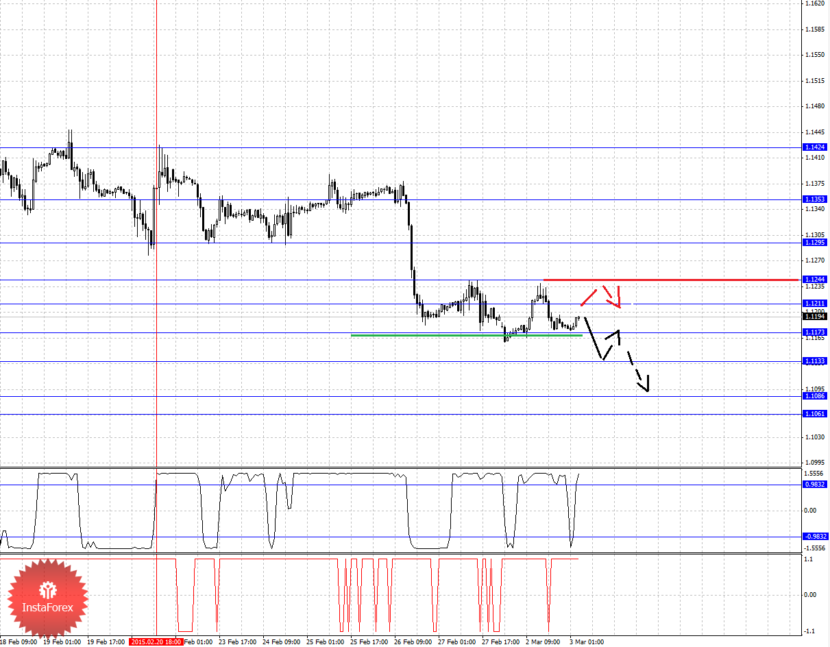 По паре Фунт/Доллар ключевыми уровнями в масштабе Н1 являются: 1.1552, 1.5493, 1.5455, 1.5380, 1.5346, 1.5320, 1.5257 и 1.5226. Здесь мы продолжаем следить за формированием потенциала для нисходящего движения от 26 февраля. Продолжения движения книзу ожидаем после пробоя 1.5380, в данном случае цель – 1.5346, возле этого уровня консолидация цены. Проход ценой шумового диапазона 1.5345 – 1.5320 должен сопровождаться развитием выраженного движения книзу, здесь цель – 1.5257, в коридоре 1.5257 – 1.5226 консолидация цены. Краткосрочное восходящее движение возможно в коридоре 1.5455 – 1.5493, последний является ключевым сопротивлением для формирования восходящей структуры. Потенциальным значением для верха считаем уровень 1.5552.