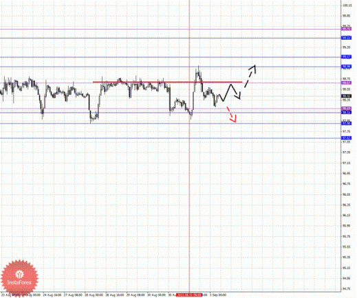 По паре Евро/Иена ключевыми уровнями являются: 99.70, 99.53, 99.17, 98.98, 98.67, 98.19, 98.11, 97.90 и 97.62. Здесь от 31 августа формируется потенциал для развития восходящего движения, его отмены ожидаем после прохода ценой шумового диапазона 98.19 – 98.11, в данном случае первая цель 97.90. Потенциальным значением для нисходящего движения считаем уровень 97.62, по достижении которого ожидаем консолидацию. Краткосрочное восходящее движение возможно после пробоя 98.67, в данном случае потенциальная цель – 98.98. В целом, пробой уровня 98.98 позволит рассчитывать на развитие восходящей структуры в масштабе Н1, здесь первая цель – 99.17.