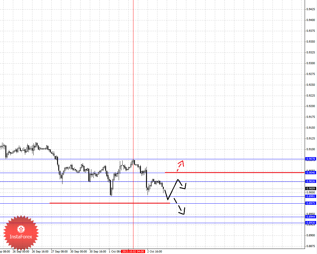По паре Доллар/Франк ключевым уровня являются: 0.9078, 0.9046, 0.9026, 0.8991, 0.8975, 0.8944 и 0.8930. Здесь от 2 октября оформился локальный потенциал для движения книзу. Краткосрочное нисходящее движение ожидаем в коридоре 0.8991–0.8975, пробой последнего значения должен сопровождаться выраженным нисходящим движением, в данном случае цель 0.8944. Потенциальным значением для низа считаем уровень 0.8930, по достижении которого ожидаем консолидацию. Краткосрочное восходящее движение возможно в диапазоне 0.9026–0.9046, пробой последнего значения приведет к развитию восходящей структуры, в данном случае потенциальная цель – 0.9078.