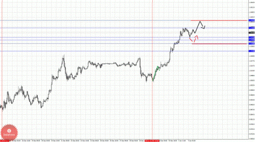По паре Евро/Доллар восходящий цикл от 29 декабря мы начинаем рассматривать в качестве среднесрочных начальных условий для верха. По паре Доллар/Франк следим за нисходящей структурой от 29 декабря. По паре Фунт/Доллар продолжаем следить за восходящей структурой от 29 декабря. По паре Доллар/Йена цена подошла к пределу, и здесь необходимо создание локальной структуры для последующего движения книзу. По паре Евро/Йена от 30 декабря наблюдаются небольшие начальные условия для развития восходящей тенденции. По паре Фунт/Йена мы ожидаем оформления более выраженной структуры для верха, необходимо отметить, что нисходящий цикл от 22 декабря по-прежнему актуален для определения целей. Доу вроде как двинулся в восходящем направлении. Золото создает низкую размерность в масштабе Н1.
