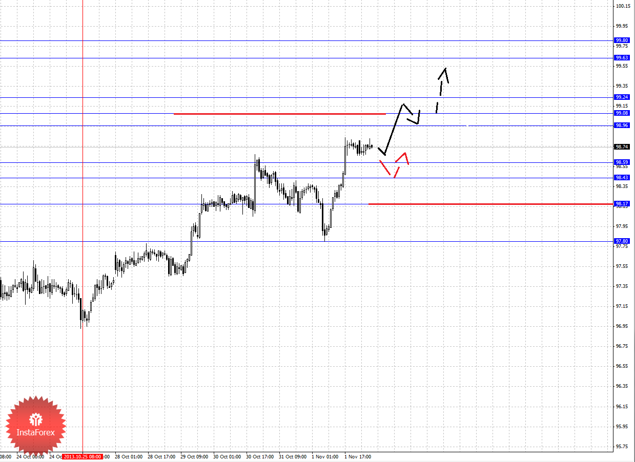 По паре Евро/Доллар продолжаем следить за нисходящим циклом от 25 октября. По паре Доллар/Франк следим за восходящим циклом от 25 октября. Продолжаем следить за нисходящим циклом от 23 октября, движение кверху рассматриваем в качестве коррекции. По паре Доллар/Иена мы расширили потенциал для восходящего движения. По паре Евро/Иена следим за формированием начальных условий для низа от 30 октября. По паре Фунт/Иена ключевые цели пока остаются без изменения.