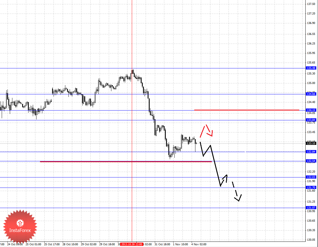 По паре Евро/Иена ключевыми уровнями являются: 135.48, 134.66, 134.15, 133.84, 132.84, 132.54, 132.03, 131.70 и 131.07. Здесь мы расширили потенциал для нисходящего движения от 30 октября. Краткосрочное нисходящее движение возможно в коридоре 132.84 – 132.54, пробой последнего значения должен сопровождаться выраженным нисходящим движением, в данном случае цель – 132.03, в коридоре 132.03 – 131.70 консолидация цены. Потенциальным значением для низа считаем уровень 131.07, по достижении которого ожидаем откат кверху. Краткосрочное восходящее движение возможно в коридоре 133.84 -134.15, пробой последнего значения приведет к углубленному движению, здесь цель – 134.66, этот уровень является ключевой поддержкой для нисходящей структуры от 30 октября, его проход ценой будет располагать к развитию восходящей структуры, в данном случае потенциальная цель – 135.48.